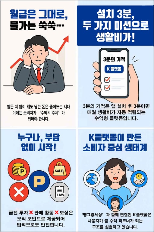 월급은 그대로인데 치솟는 물가에 생활비 부담이 커지는 요즘, 누구나 관심을 가질 만한 새로운 수익 플랫폼이 등장했다. ‘3분의 기적’ 앱은 이름처럼 단 3분, 두 가지 간단한 미션만으로 매달 생활비가 자동 적립되는 시스템이다. 금전 투자나 판매 활동 없이 부담 없이 시작할 수 있으며, 수익은 합법적인 포인트로 지급돼 안정성도 확보했다.