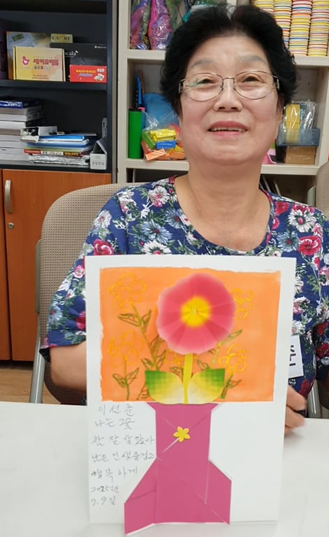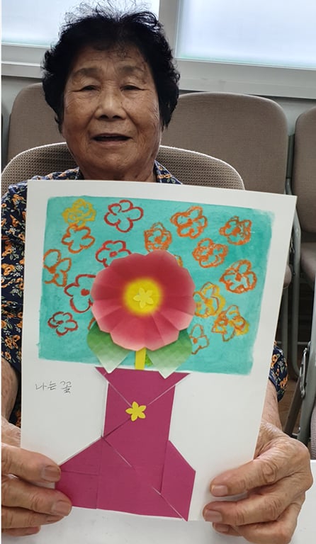 이 날의 프로그램은 단순한 미술활동을 넘어, 어르신들이 자산의 삶을 되돌아보고 자존감을 되찾는 의미있는 여정이 되었으며, 그들의 이야기는 꽃처럼 피어나 주변 사람들의 마음을 따뜻하게 만들었다.