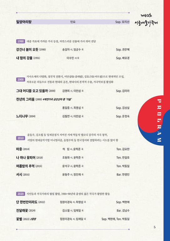 이처럼 제43회 서울예술가곡제는 우리 가곡이야말로 시대를 증언하는 살아 있는 예술임을 보여주는 무대다.