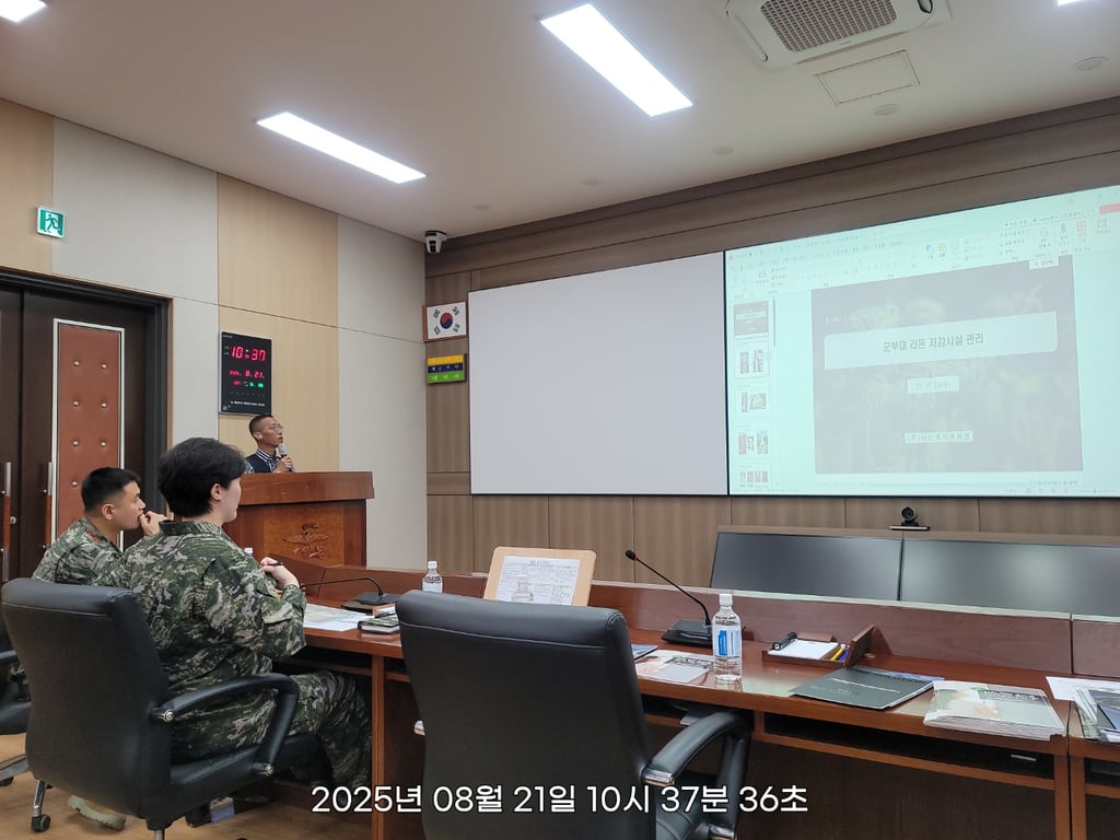이날 참석한 우수회원사는 로봇과 기기를 이용하여 주방배기 세척과 공조덕트시설 점검 및 관리를 하는 ▲더브라이트 김지수 대표, 국방시설 다수 시공실적을 가지고 있는 라돈 점검 및 개선을 하는 ▲아이웨이큐 솔루션 김성길 대표, 조달우수 및 군우수상품지정(시범) CNT활용 무필터 공기정화장치 ▲어썸레이 박형섭 본부장, 폭염대비 재난안전제품선정 친환경 단차열 기능성 페인트 ▲이유씨엔씨 최장식 대표, 국방신기술 배관세정장치 ▲진행워터웨이 김완주 본부장, 국방신기술 창문형 환기설비 ▲포원솔루션 김학겸 회장, 자외선100%차단 에너지필름 ▲프람타드랩 강효창 대표가 참석하여 제품설명 및 설치를 위한 실측을 관계자와 협의했다.