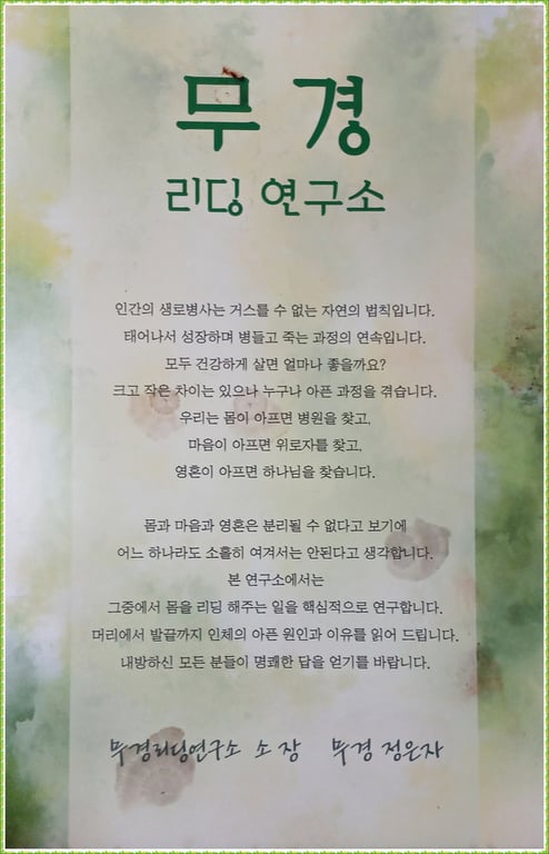 리딩실에서 팔당호 전망을 바라보는 무경쌤의 눈빛은 단호했다. 그에게 ‘수맥’은 땅속의 물길을 찾는 일이 아니라, 사람의 혈액과 몸 전체를 읽어내며 건강과 삶을 지켜내는 사명 그 자체였다.