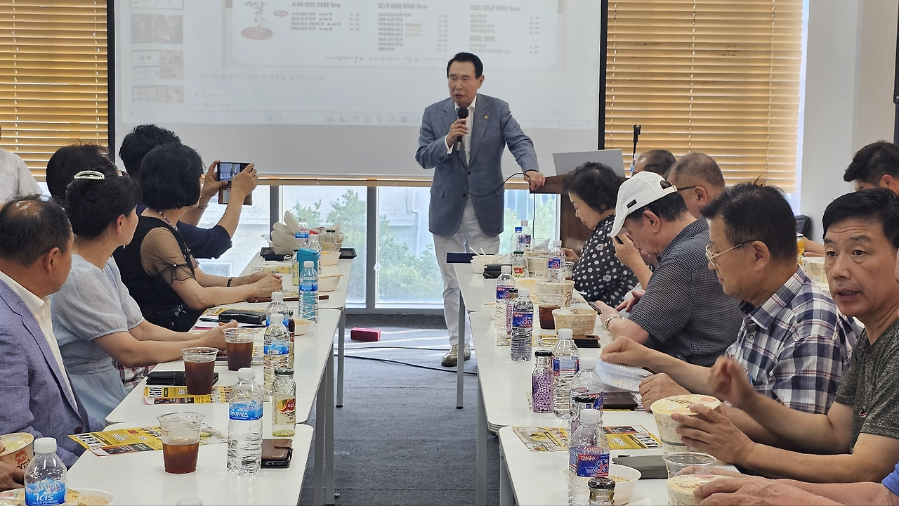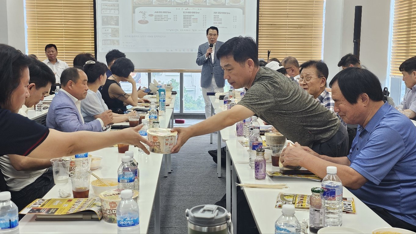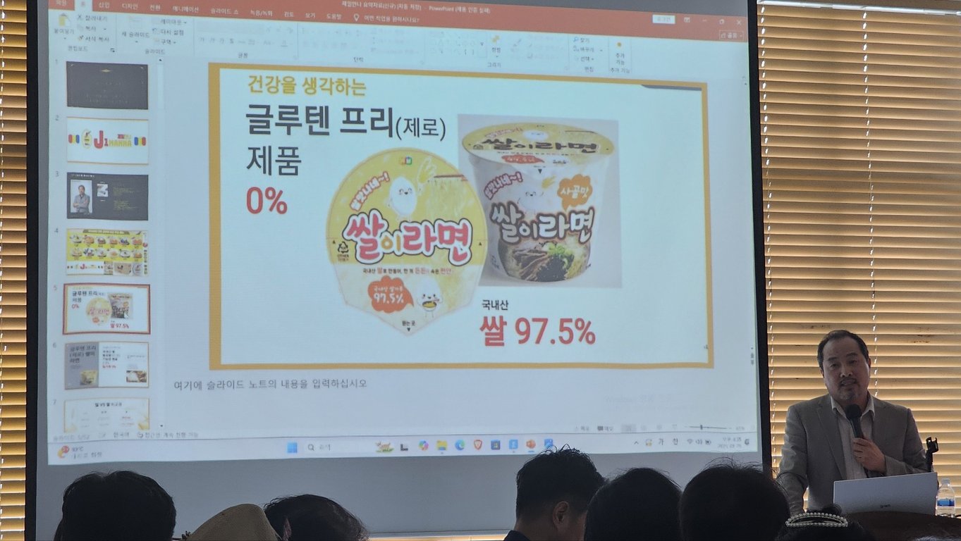 먼저 제일만나 장성호 대표이사가 무대에 올라 ‘쌀면 프로젝트’를 소개했다. 장 대표는 “6·25 이후 밀가루가 우리 민족을 살린 것처럼, 이제는 100% 쌀로 만든 면이 새로운 시대를 열 것”이라며, 17년간의 연구 끝에 완성된 제품을 직접 설명했다. 그는 스파게티, 짜장, 짬뽕, 비빔면 등 13가지 라면형 쌀면을 소개하며 “국내산 쌀가루와 자체 소스 배합으로 글루텐 프리 건강식을 구현했다”고 강조했다. 참석자들은 새로운 발상의 전환에 고개를 끄덕이며 큰 관심을 보였다.