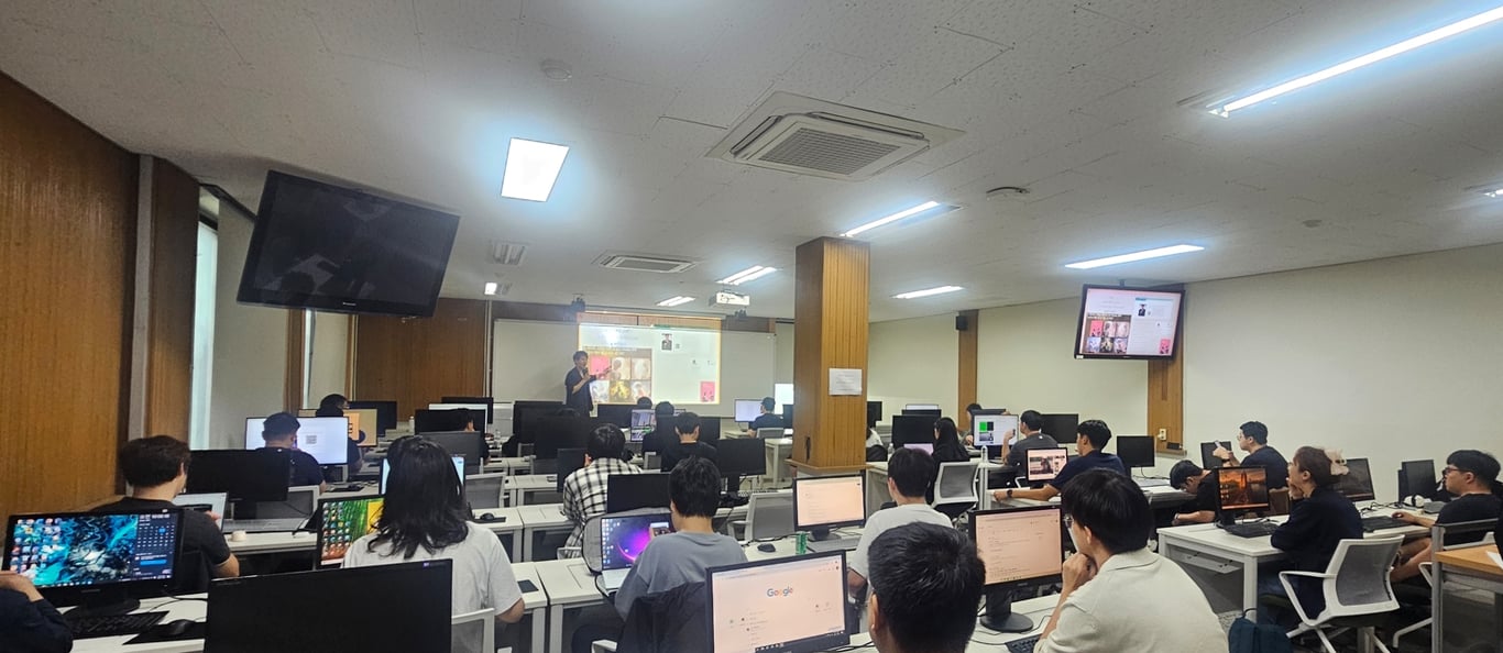 이번 특강은 오전 10시부터 약 2시간 동안 “AI를 활용한 아트 생성 작가 되기”를 주제로 진행되었으며, 30여 명의 학생들이 참여해 뜨거운 호응을 이끌어냈다.