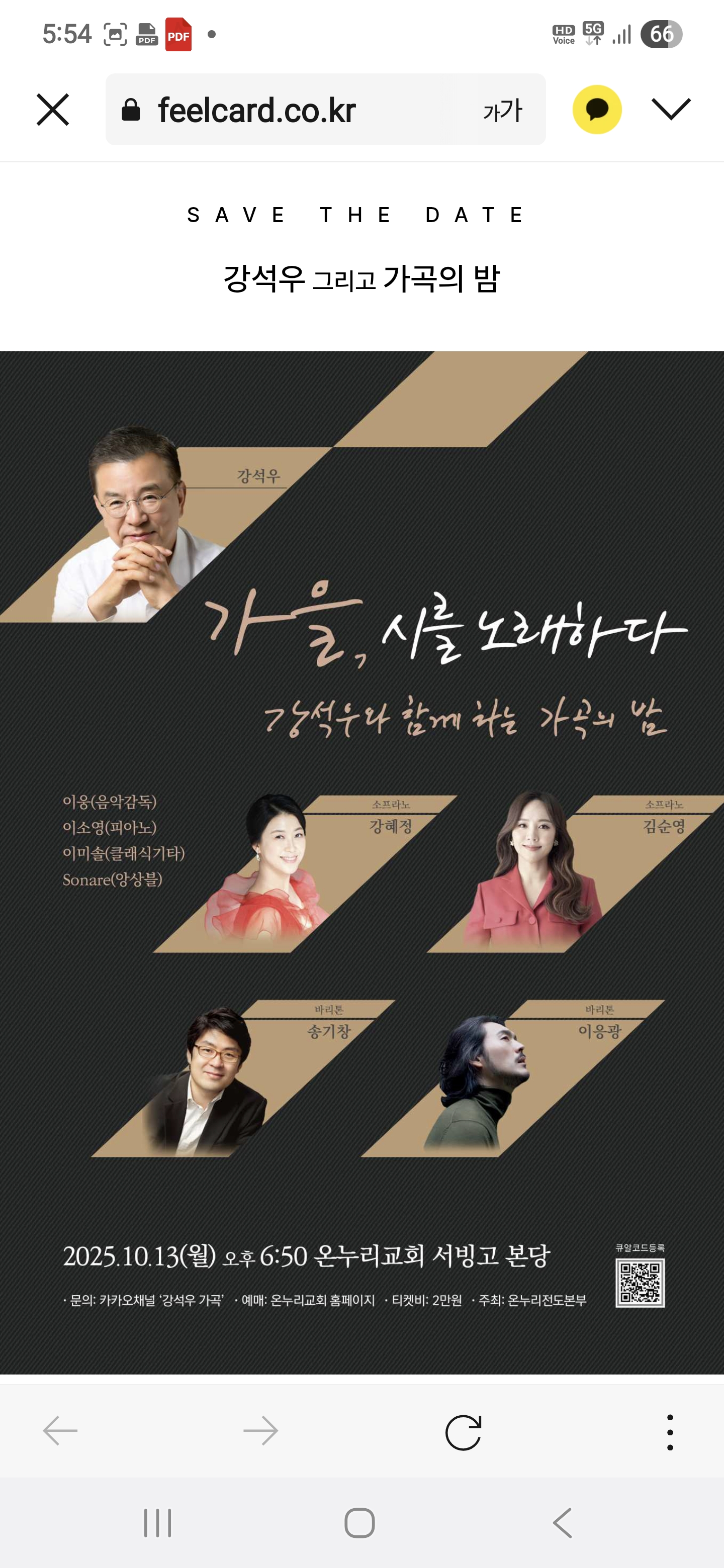 오늘의 무대는 방송인 강석우 씨가 주최한 〈가곡의 밤〉으로 그가 소속된 온누리교회 본당에서 열린 이번 공연은, 배우로서의 익숙한 얼굴 뒤에 숨겨진 ‘가곡을 사랑하는 음악인’으로서의 진심이 고스란히 전해진 자리였다.