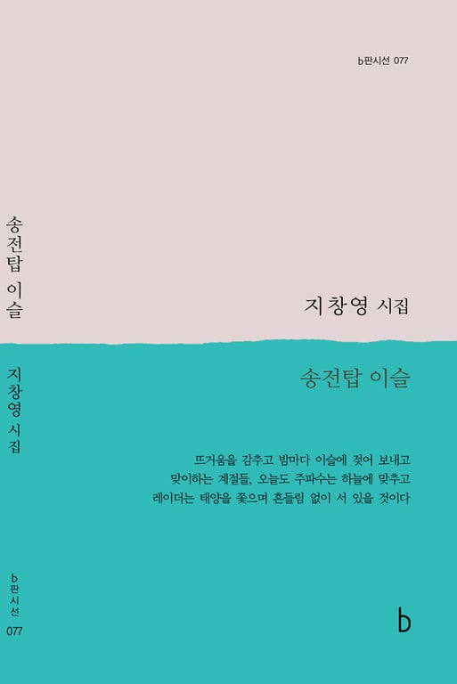 도서출판 b는 지창영 시인의 두 번째 시집 『송전탑 이슬』을 ‘b판시선’ 시리즈 77번째 작품으로 2025년 9월 23일 출간했다. 이번 시집은 반양장본(125×190mm), 139쪽 분량으로 구성되었다.