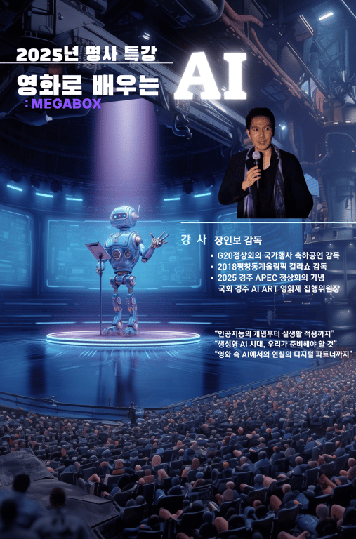 영화관이라는 이색적인 공간에서 펼쳐지는 이번 ‘영화로 보는 AI 스페셜 강연’은 기술과 인문학, 그리고 엔터테인먼트가 결합된 새로운 지식 콘텐츠의 장을 열며, AI 시대를 살아가는 우리에게 꼭 필요한 통찰을 선사할 것으로 기대된다.
