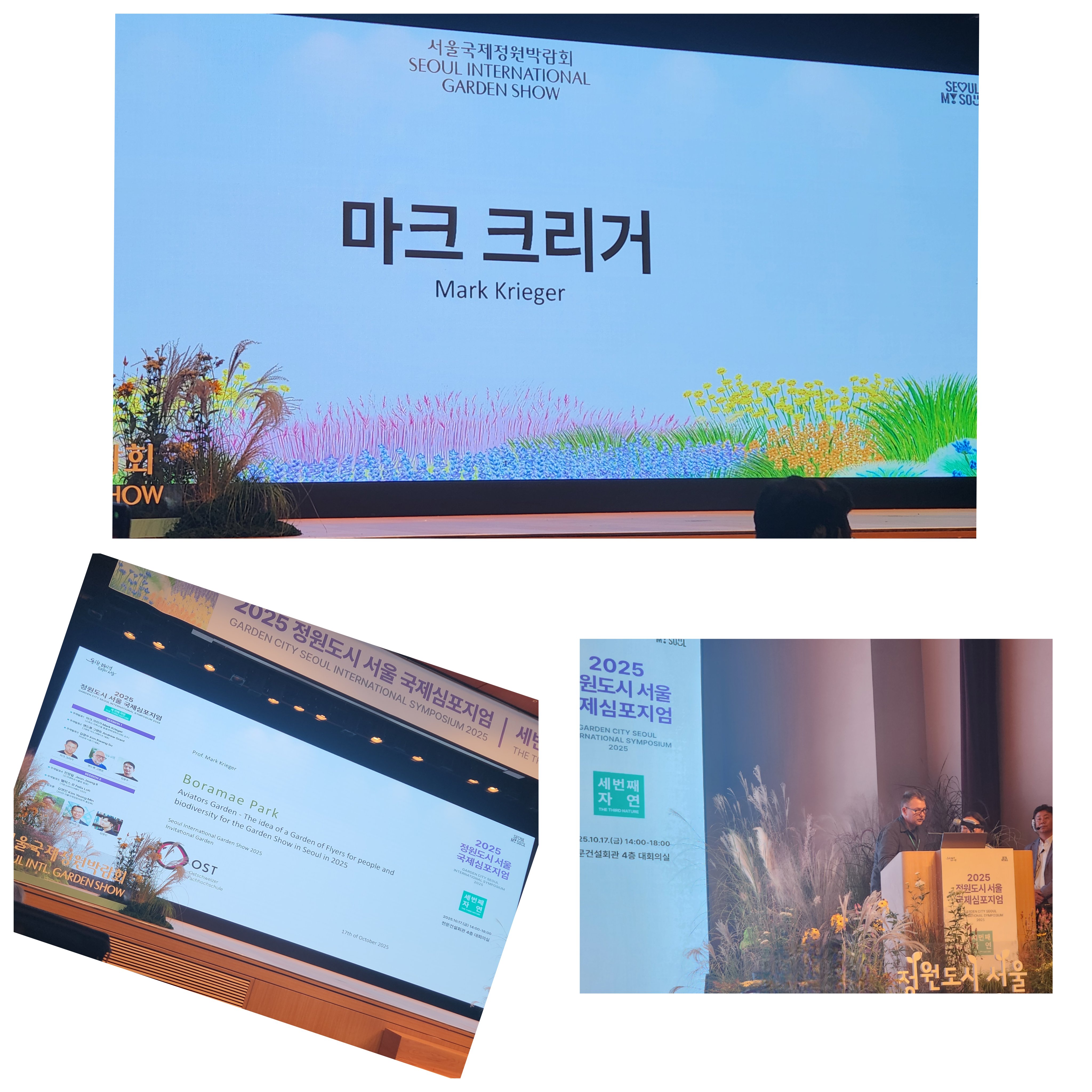 스위스 라퍼스빌 응용과학대학 교수(마크 크리거)는 2025 서울국제정원박람회 출품작 중 하나인 ‘Aviators Garden’을 소개하며, “이 정원은 과거 서울 비행훈련장 부지인 보라매공원에서 영감을 받아 기획되었고, 생물다양성과 건강한 환경 보전을 목표로 설계되었다”고 말했다. “야생 새집과 벌집 설치, 자생식물 울타리 조성 등 창의적인 방식으로 생물을 정원으로 초대하는 실험적 디자인”이라며 지속 가능한 도시 생태계 구축의 사례로 제시했다.