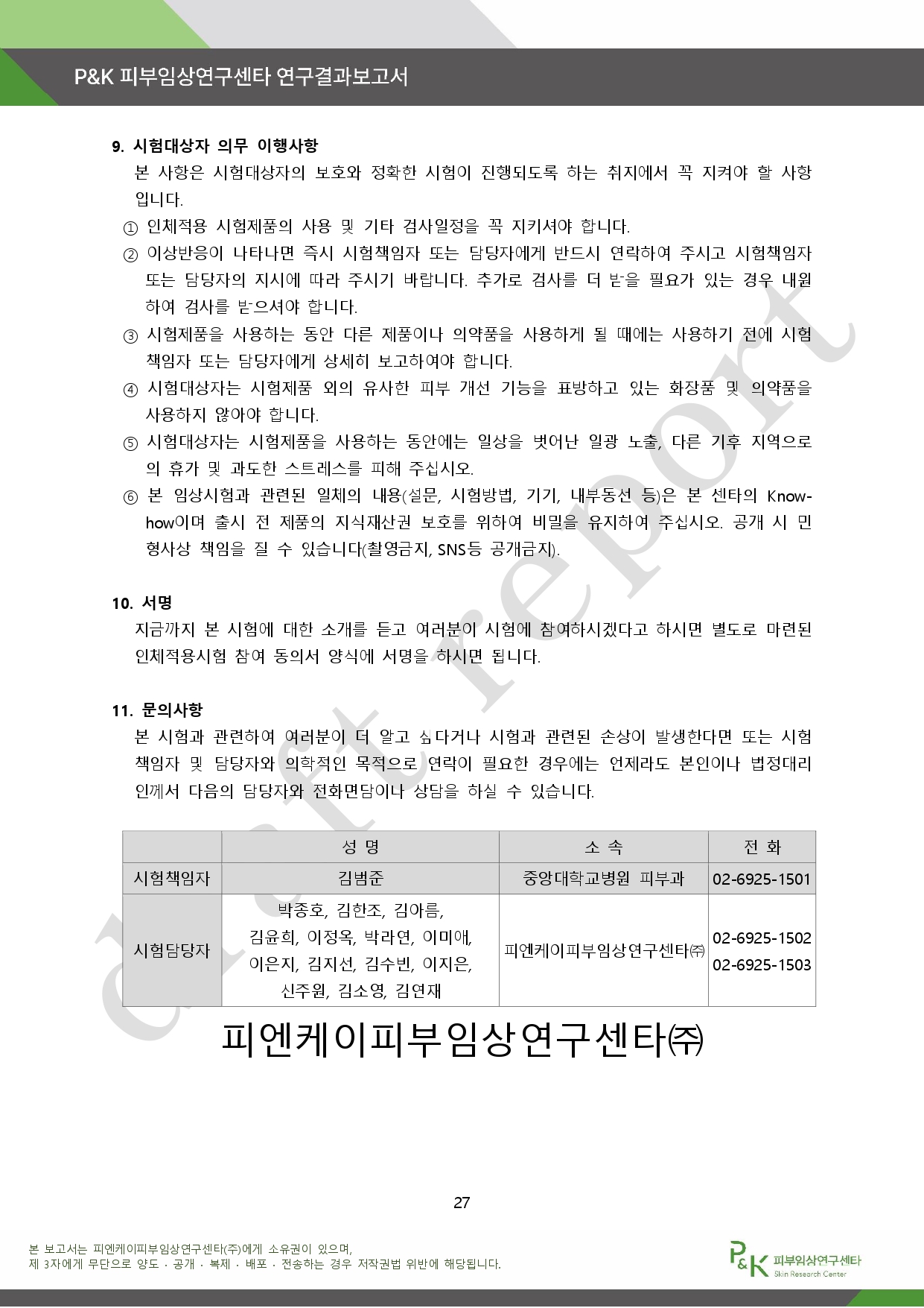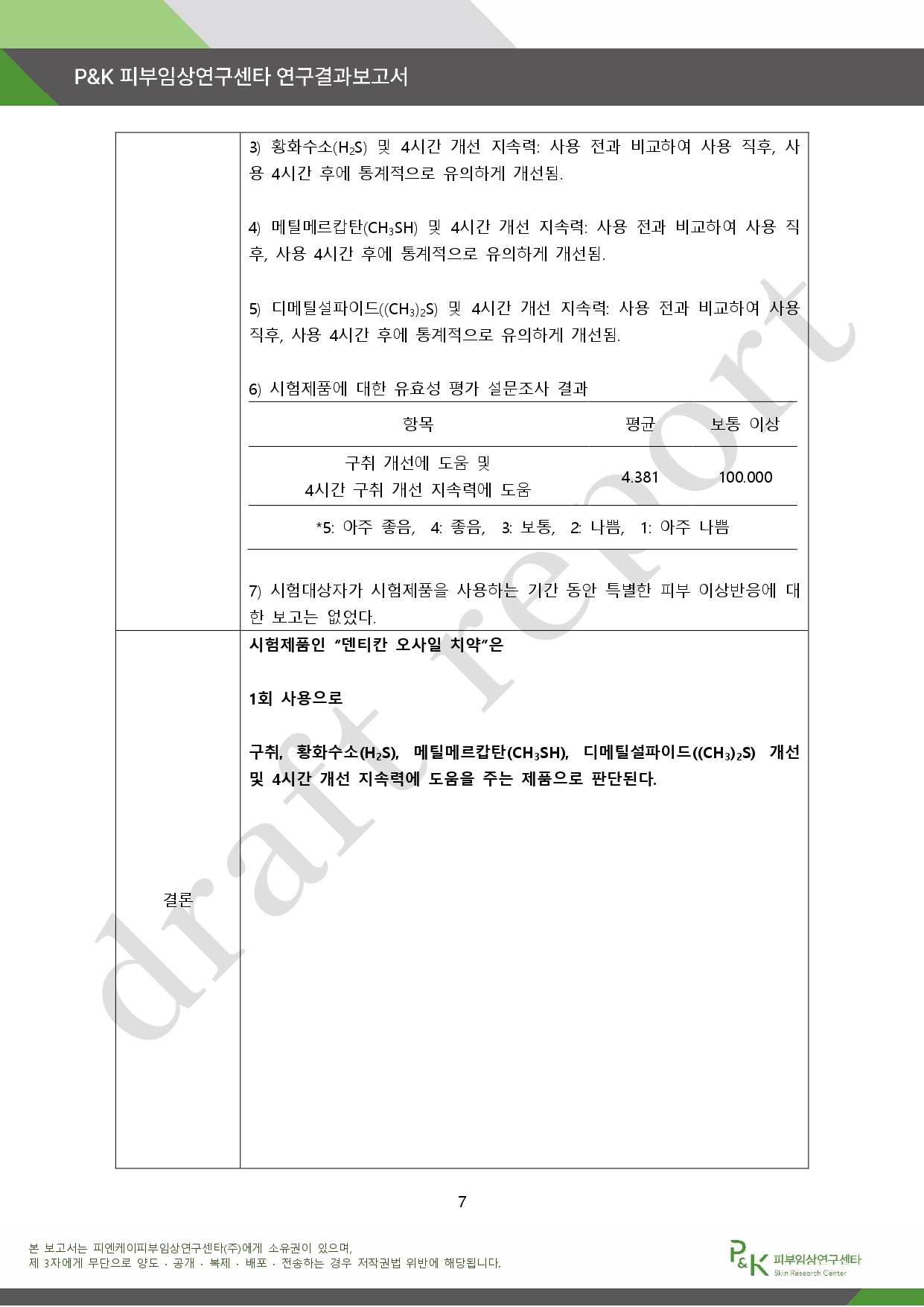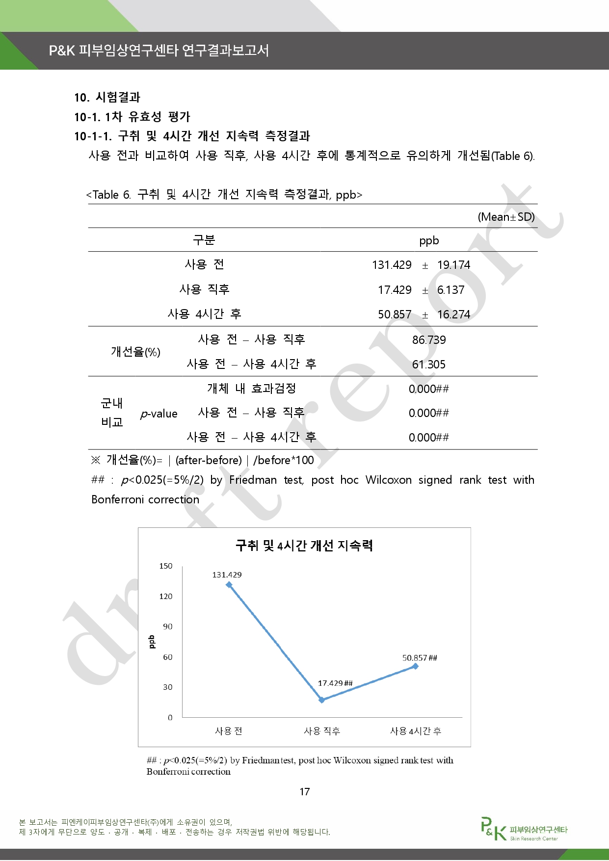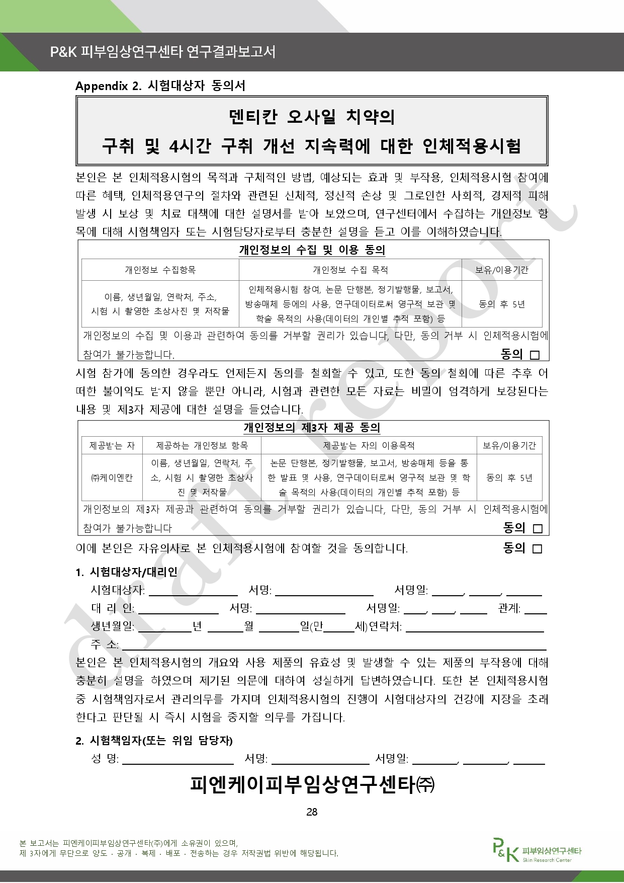 아래는 P&K 피부임상연구센타 연구결과 보고서다.
