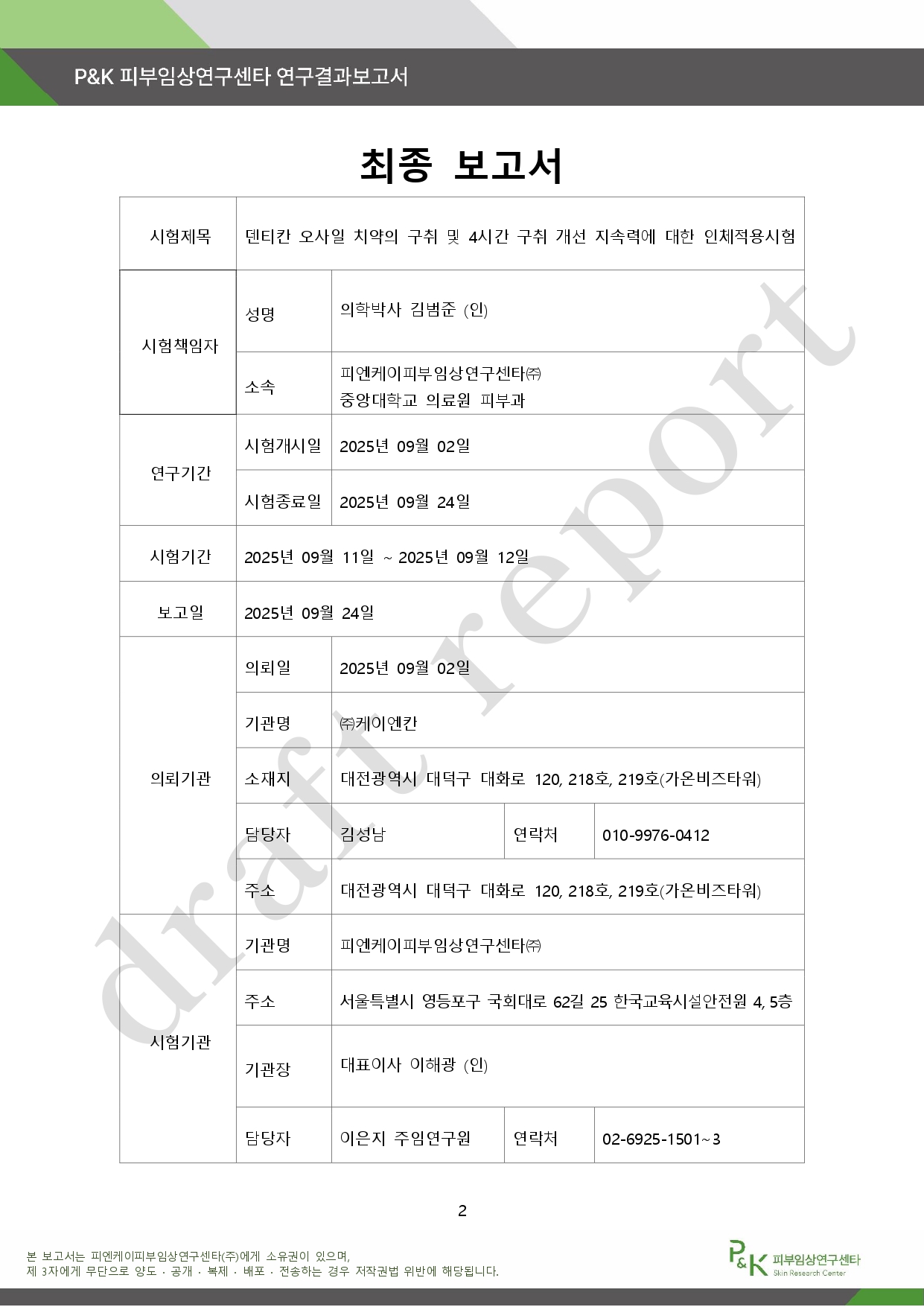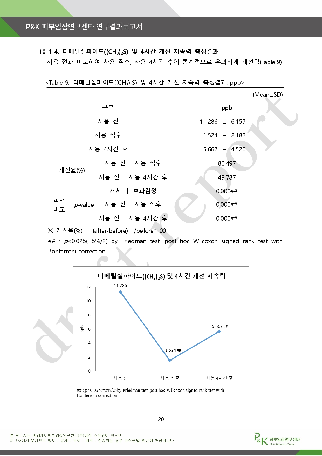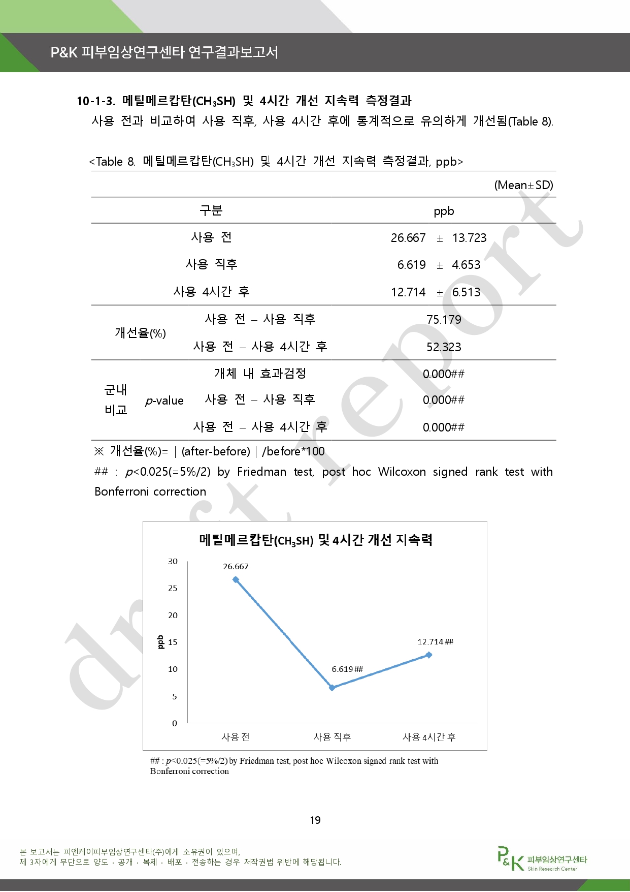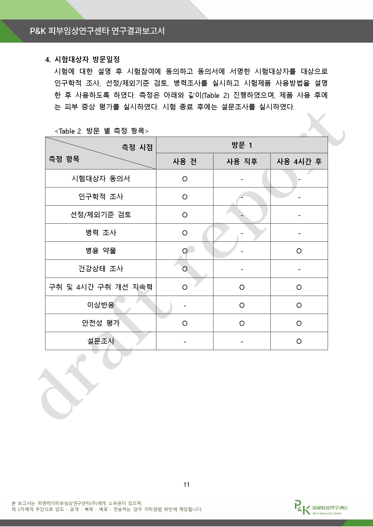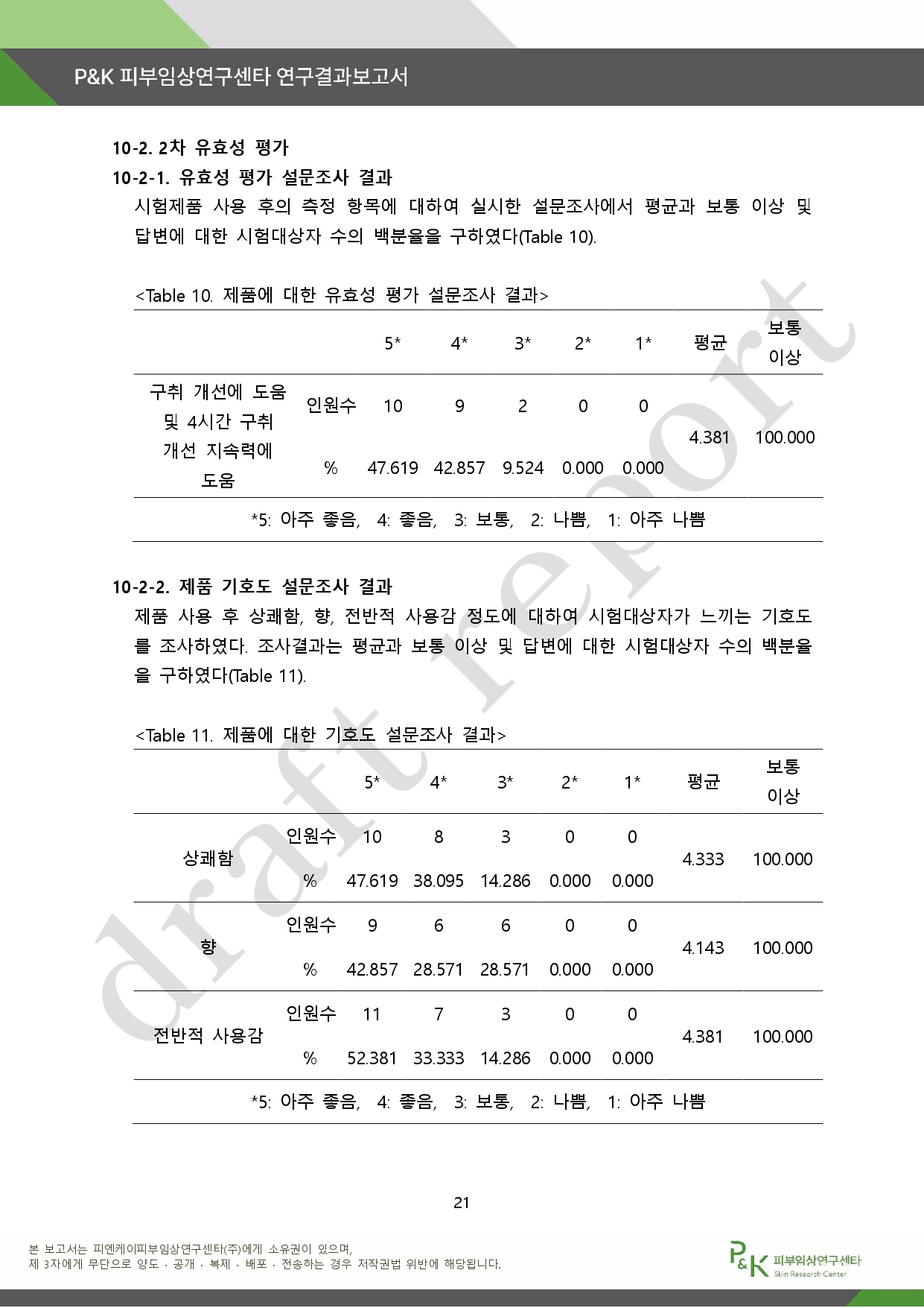 아래는 P&K 피부임상연구센타 연구결과 보고서다.