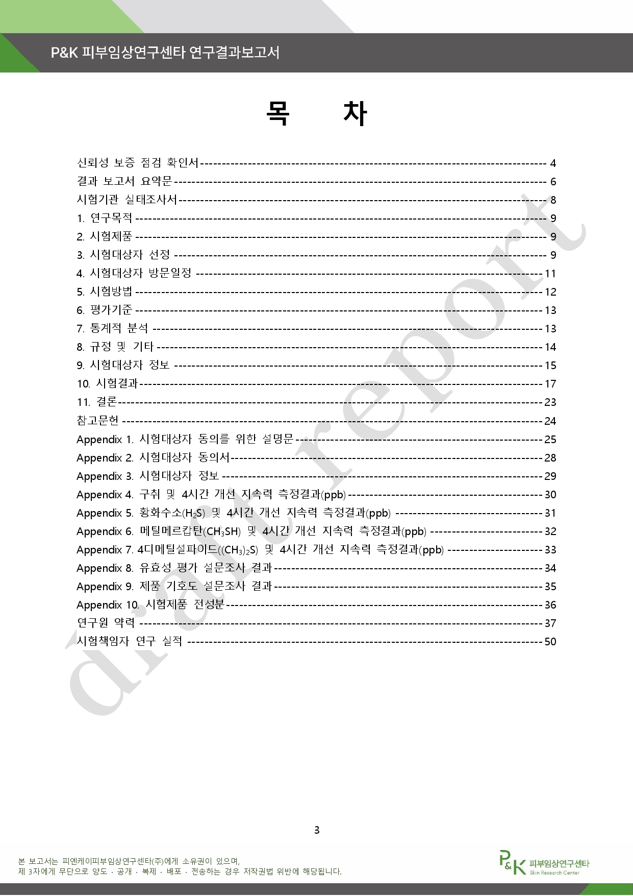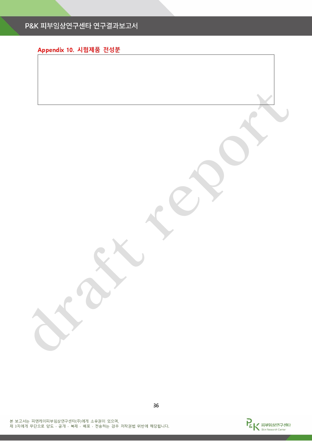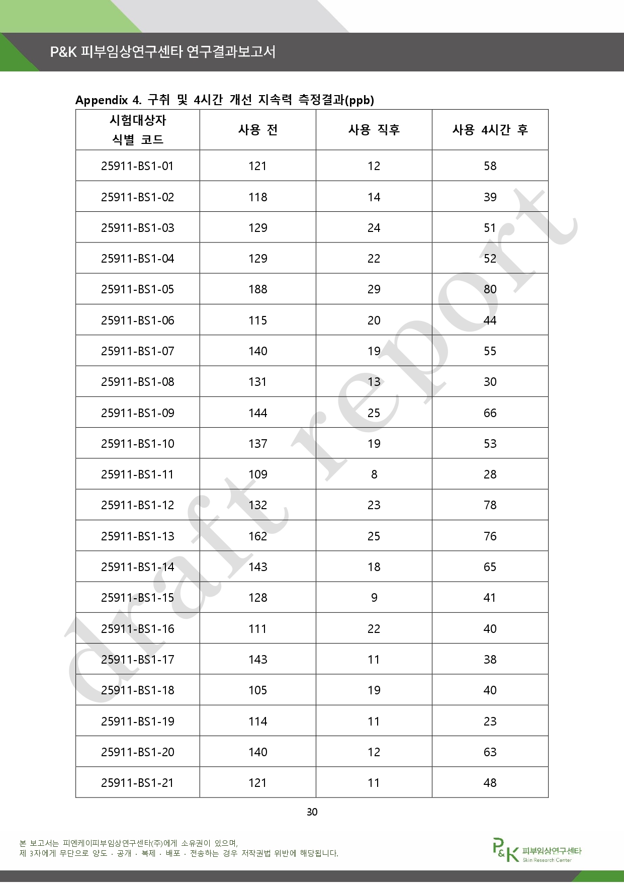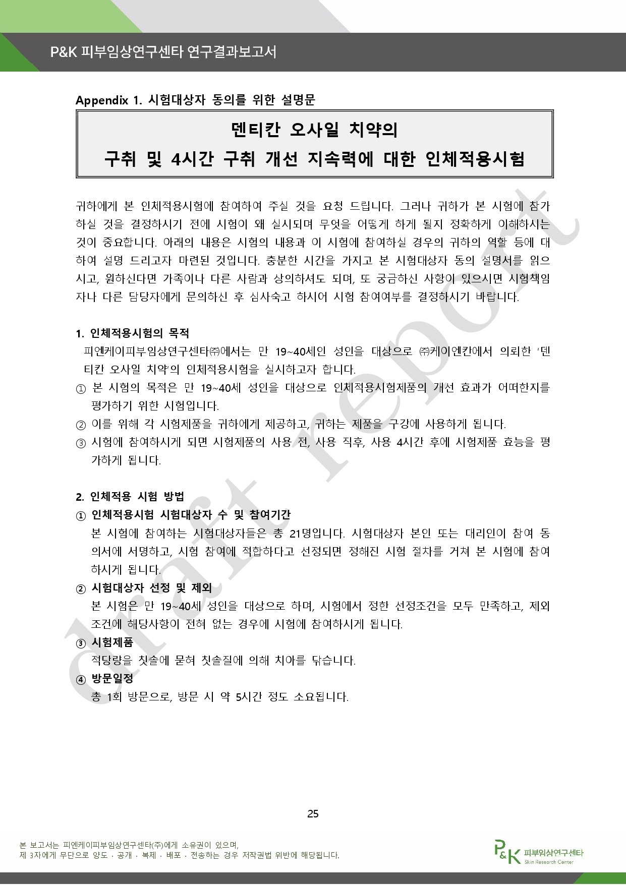 아래는 P&K 피부임상연구센타 연구결과 보고서다.