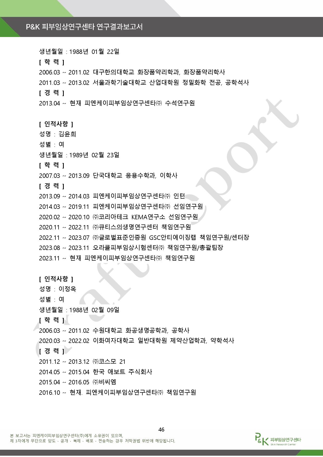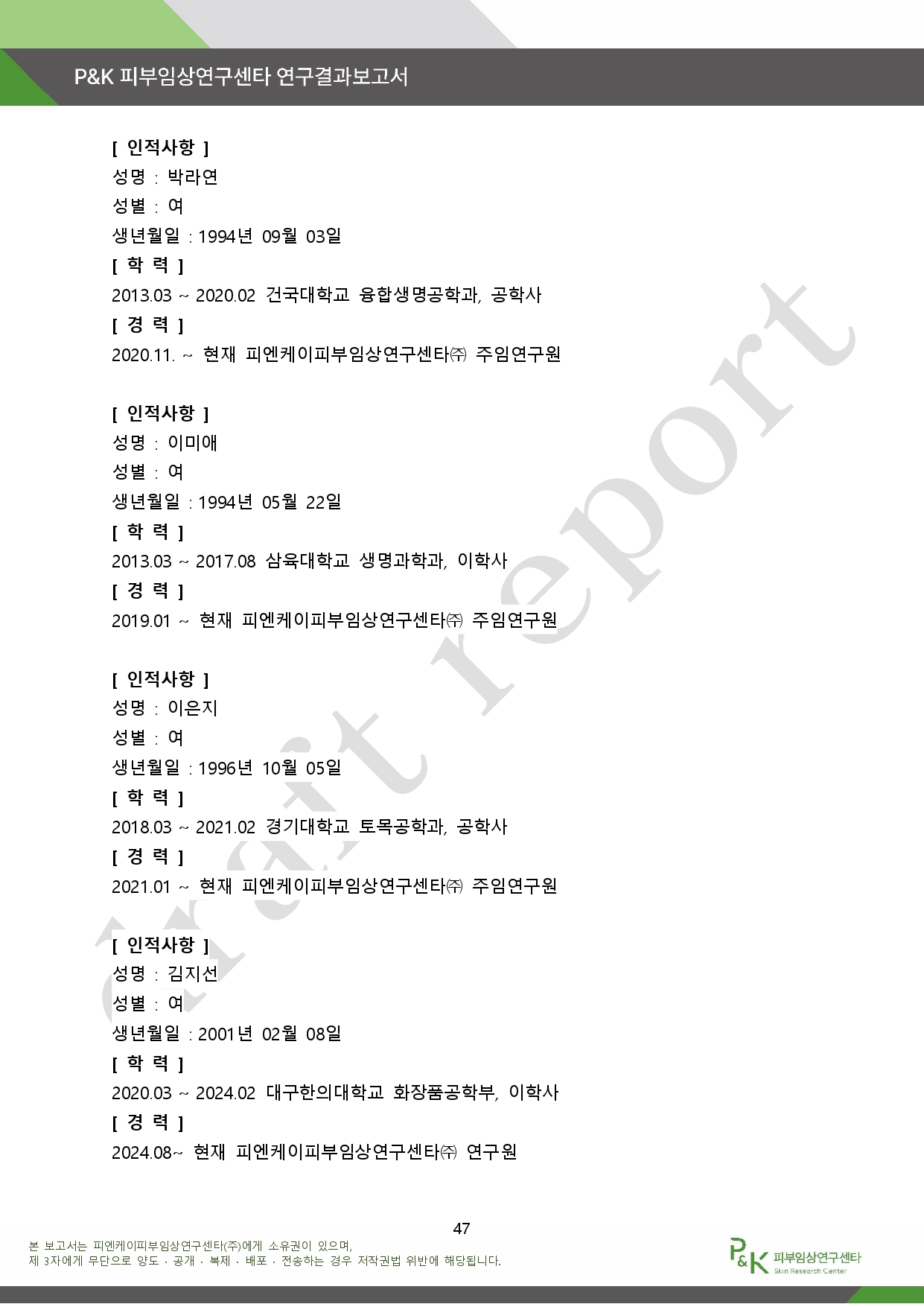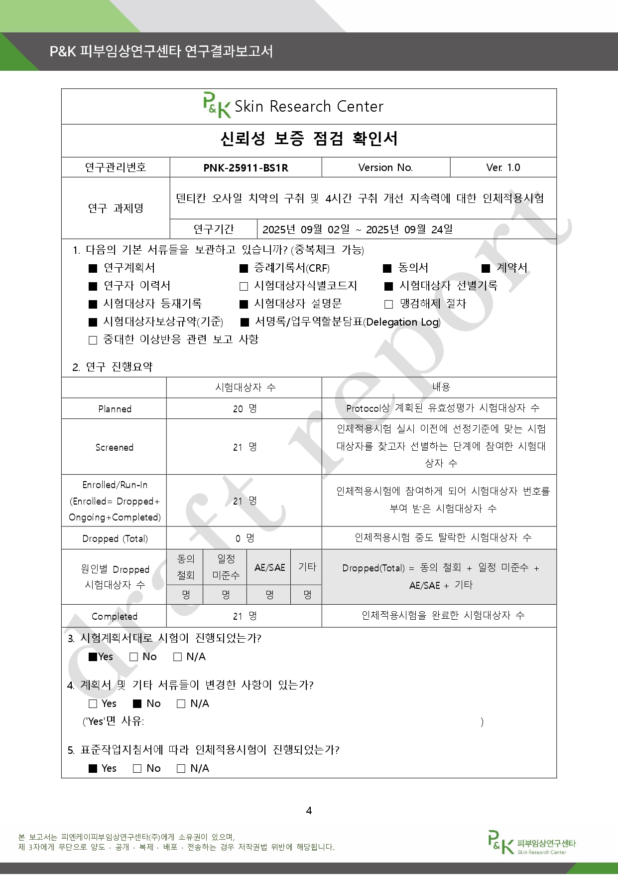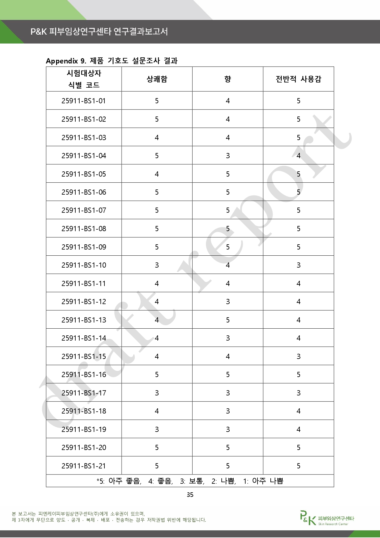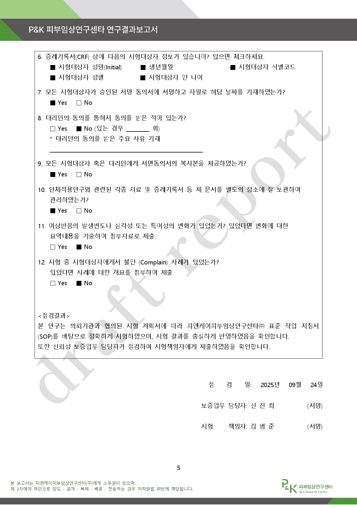 아래는 P&K 피부임상연구센타 연구결과 보고서다.