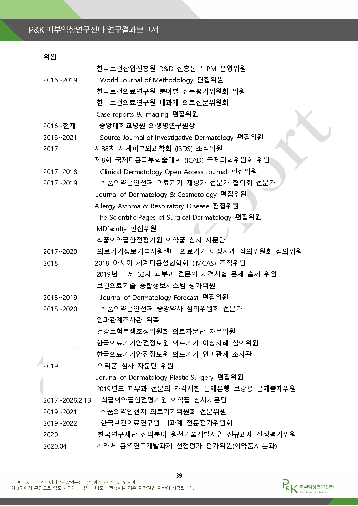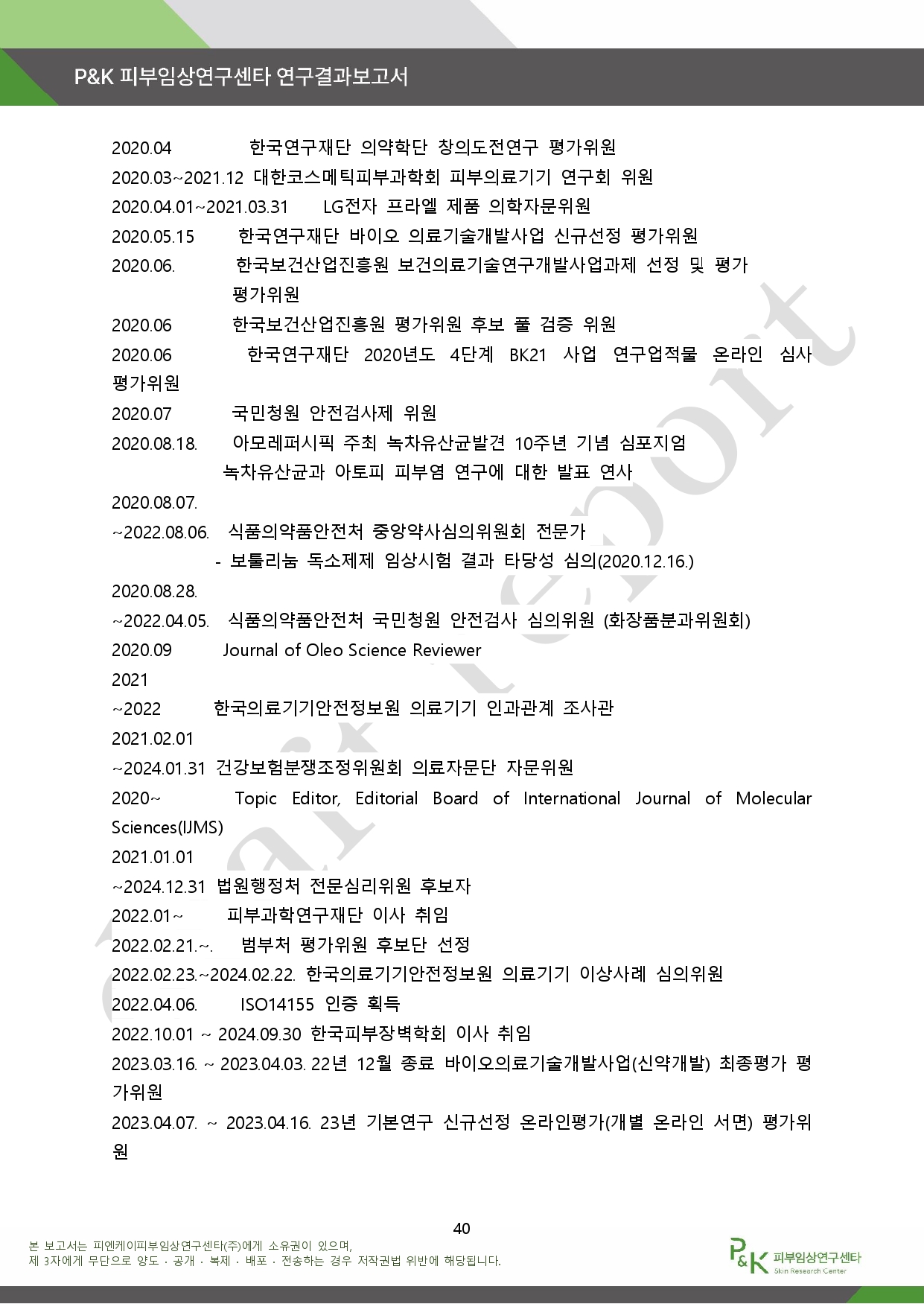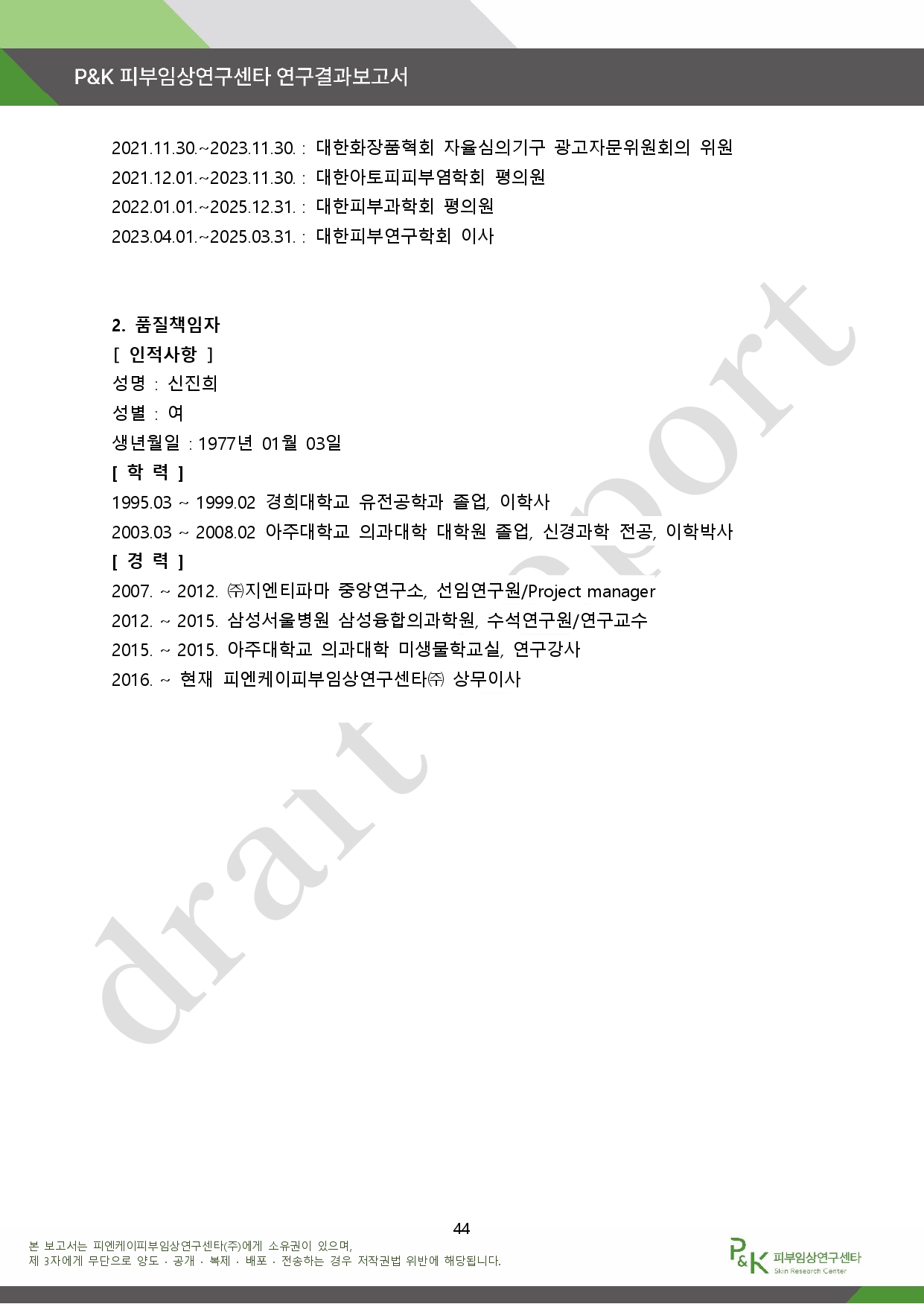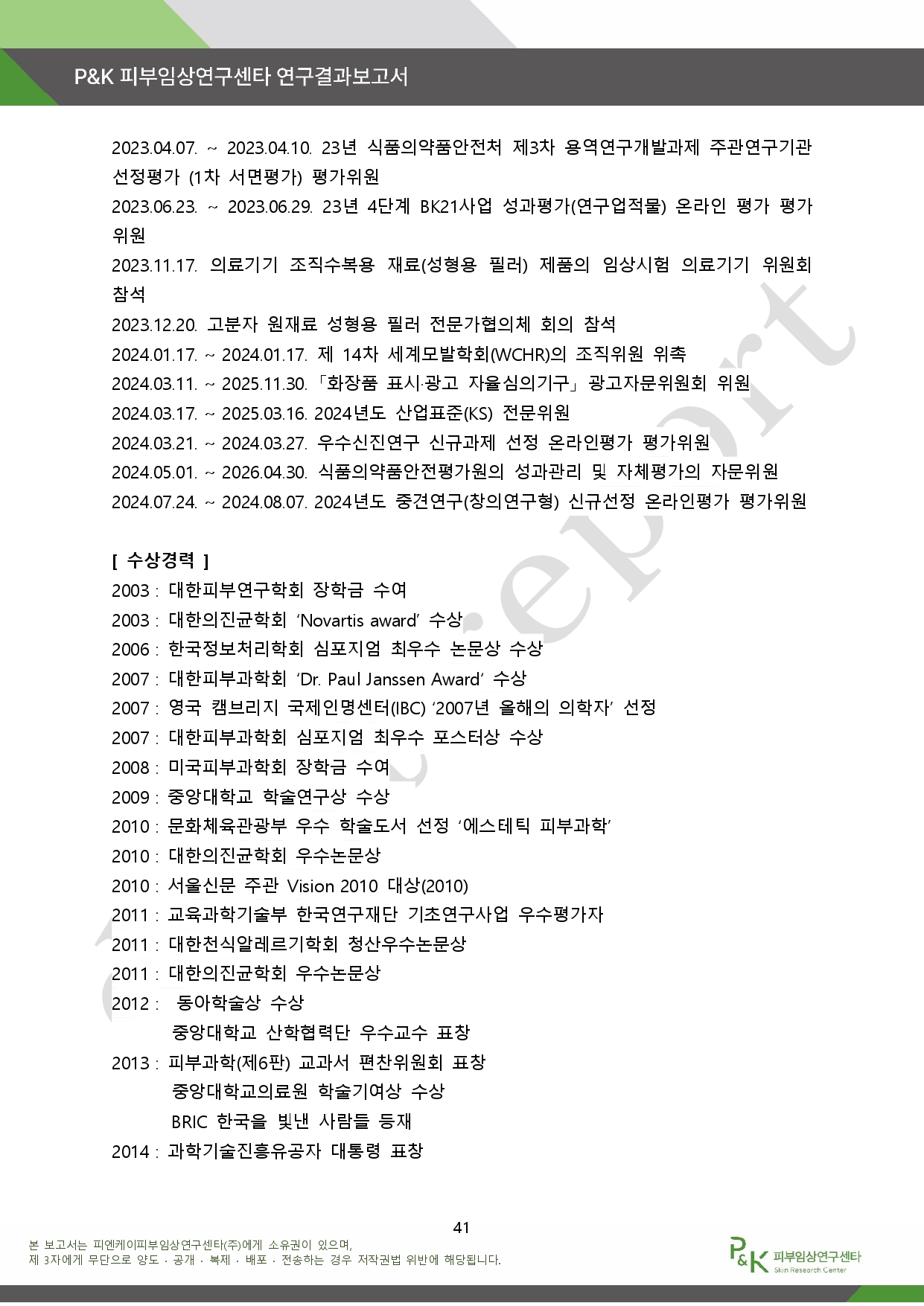아래는 P&K 피부임상연구센타 연구결과 보고서다.