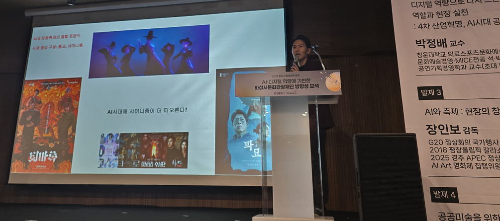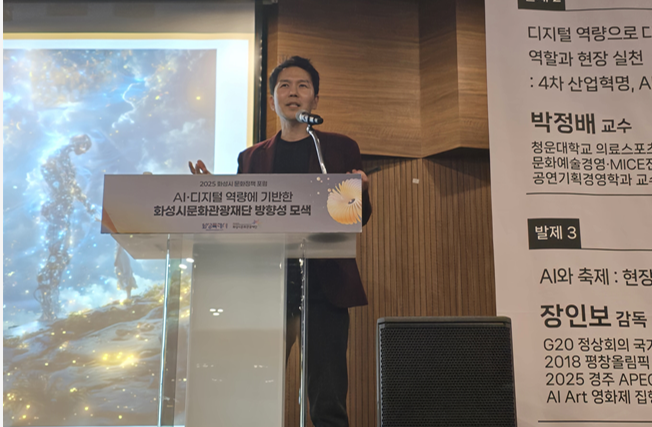 이번 포럼의 하이라이트로 꼽힌 ‘축제 세션’에서는 장인보 감독(APEC AI Art 영화제 집행위원장 / 인공지능융합센터장)이 “AI와 축제: 현장의 창조적 협업 사례”라는 주제로 깊이 있는 발표를 진행했다.