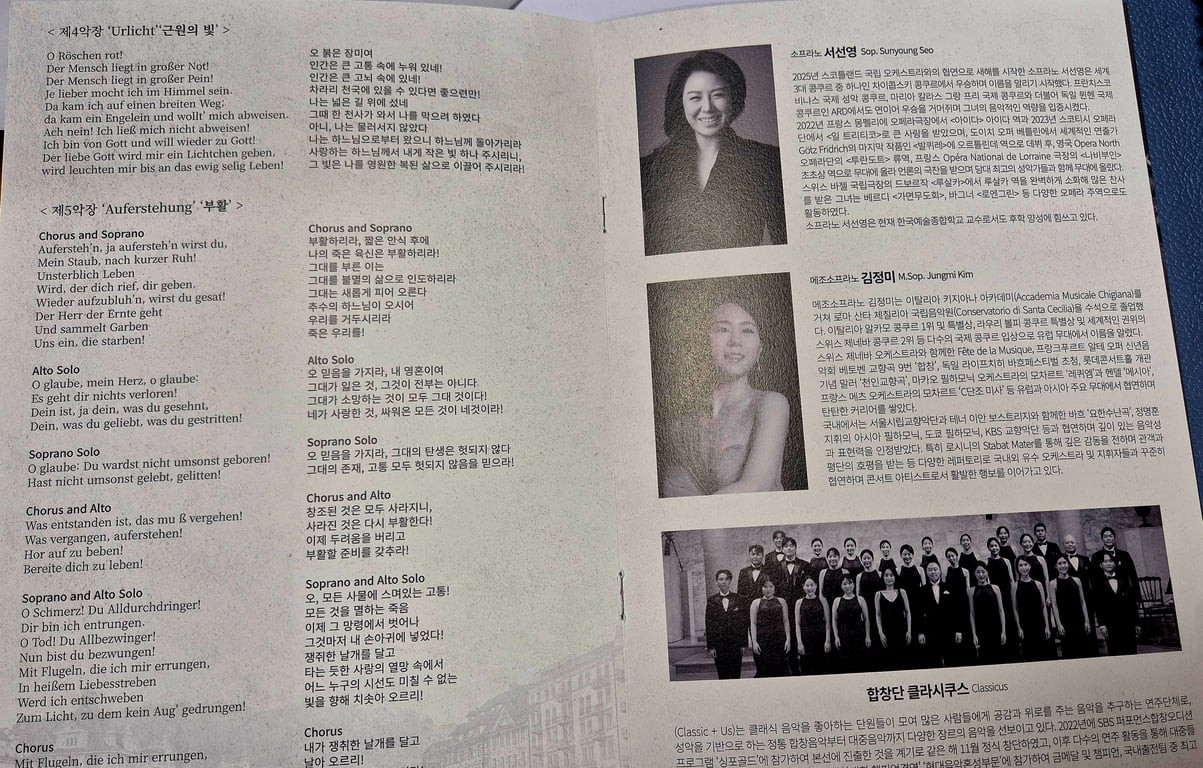 ‘죽음 이후에도 인간은 노래할 수 있는가’라는 거대한 질문의 변주다. 오늘 과천시립교향악단은 그 물음의 무게를 온몸으로 감당해냈다.