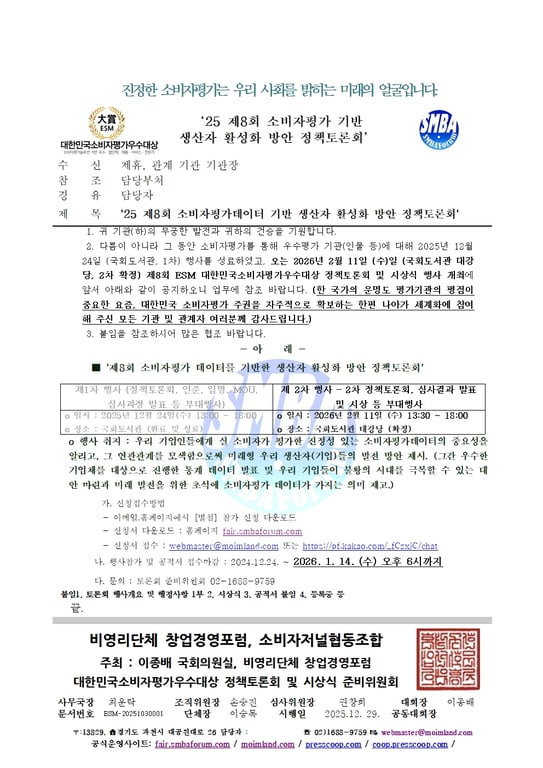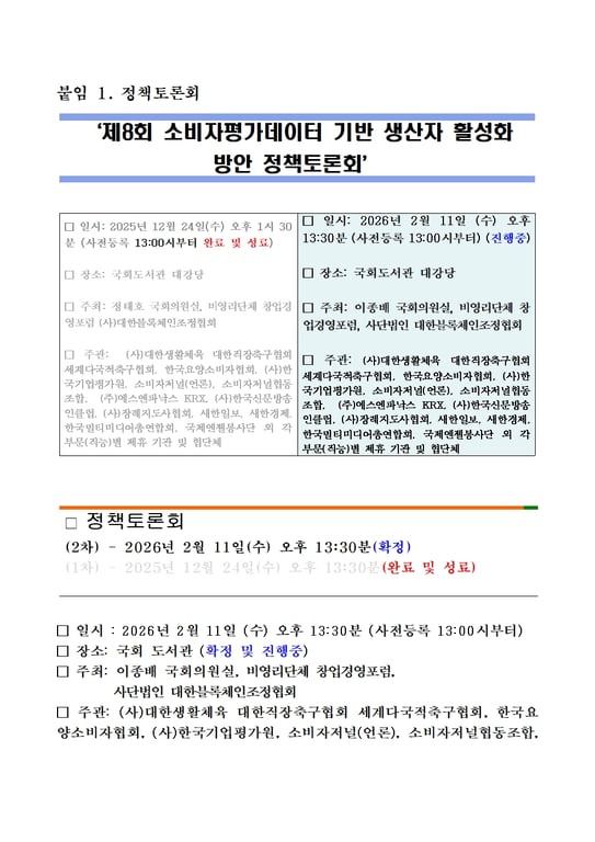 비영리단체 창업경영포럼은 2026년 2월 11일(수) 제2차 국회 정책토론회를 개최한다고 밝혔다.