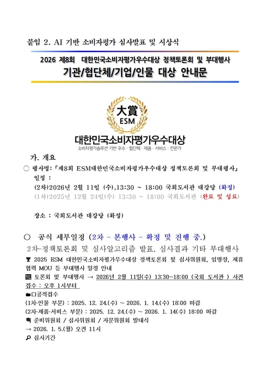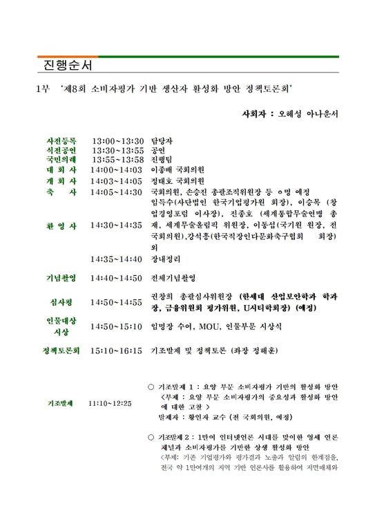 이번 정책토론회에서는 제8회 대한민국소비자평가우수대상시상식이 추가돼 국회의원, 시도지사, 군수 등 정치인은 물론 우수한 기업들이나 단체 등이 대거 수상 및 참석할 것으로 예상된다.