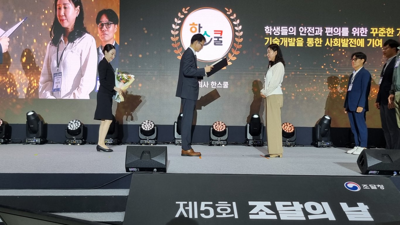 조달청은 매년 조달의 날을 맞아 공공조달 시장의 투명성 강화, 기술 혁신, 사회적 가치 실현에 기여한 우수 기관 및 기업을 선정해 포상하고 있다. 한스쿨은 공공기관과 학교 현장에 품질 높은 제품을 생산 학교에서 학생들의 안전과 환경개선에 효율적으로 운용되어야 할 품목을 선정하여 연구개발하고 혁신하여 학습 지원 서비스를 꾸준히 공급해 온 점이 높은 평가를 받았다.