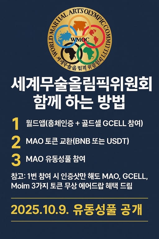 이날 행사는 오는 2027년 미국에서 개최될 제1회 세계무술올림픽을 공식 선언하고, 전 세계 무술계의 협력과 함께 블록체인 기반의 무술 분야 소비자 평가 생태계(MAO) 조성을 본격화하는 자리로 마련되었다.