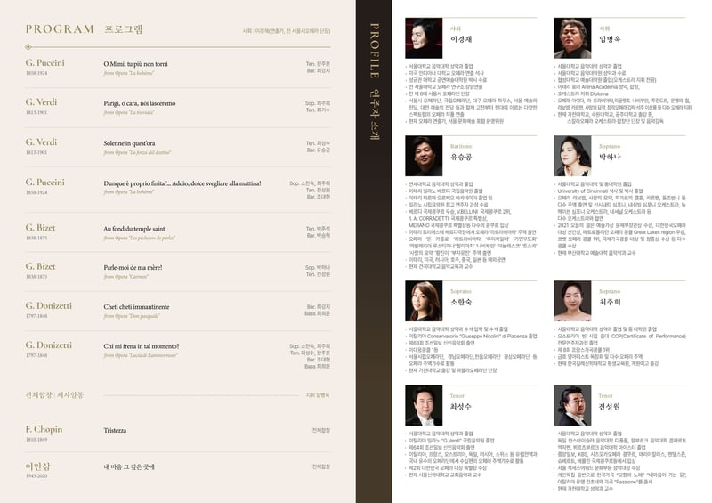 제자들은 스승이 남긴 음의 길을 따라 걸었다. 푸치니, 베르디, 비제, 도니체티의 아리아들이 차례로 무대를 채울 때마다, 마치 박 교수가 남긴 음악의 자취를 손끝으로 더듬듯 이어갔다. 듀엣의 호흡, 앙상블의 얽히는 선율, 한 음 한 음에 담긴 마음은 스승에게 바치는 가장 순수한 인사였다.