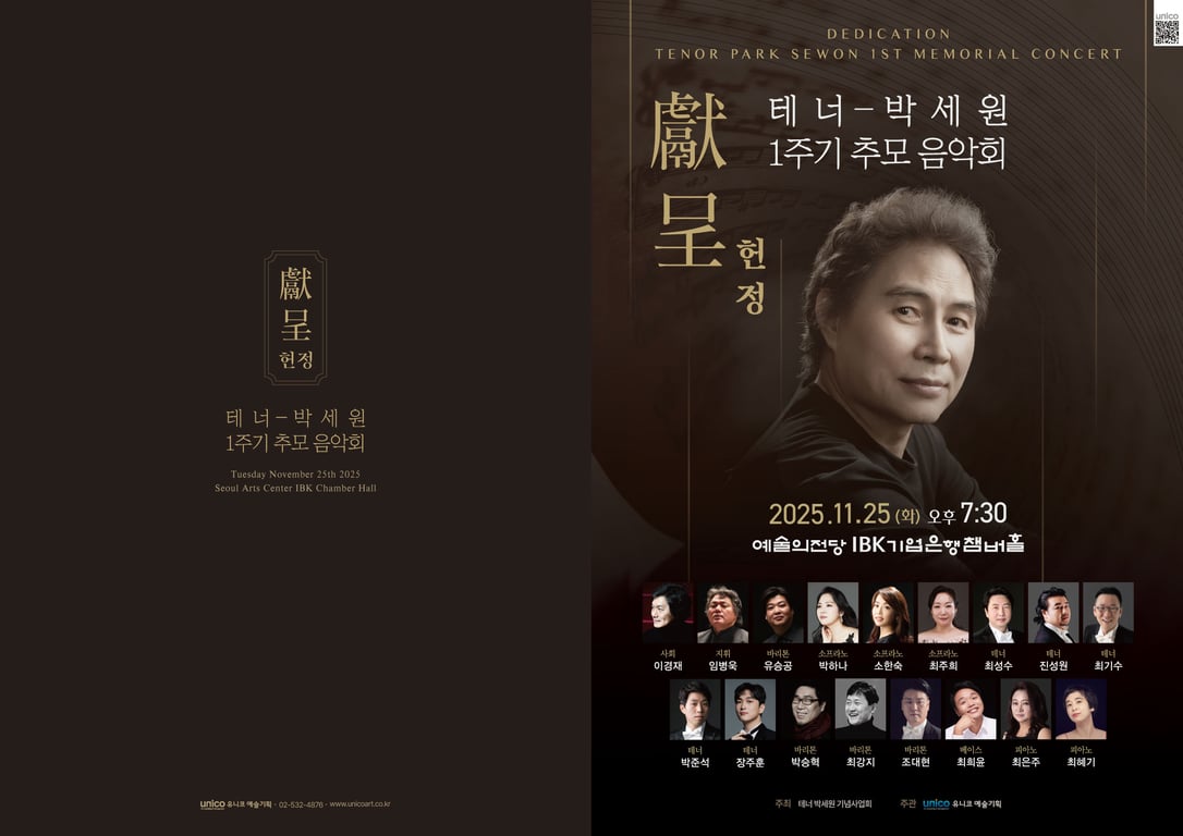 테너 박세원 교수 1주기 추모 헌정공연이 2025년 11월 25일(화) 오후 7시 30분, 예술의전당 IBK 챔버홀에서 열렸다.