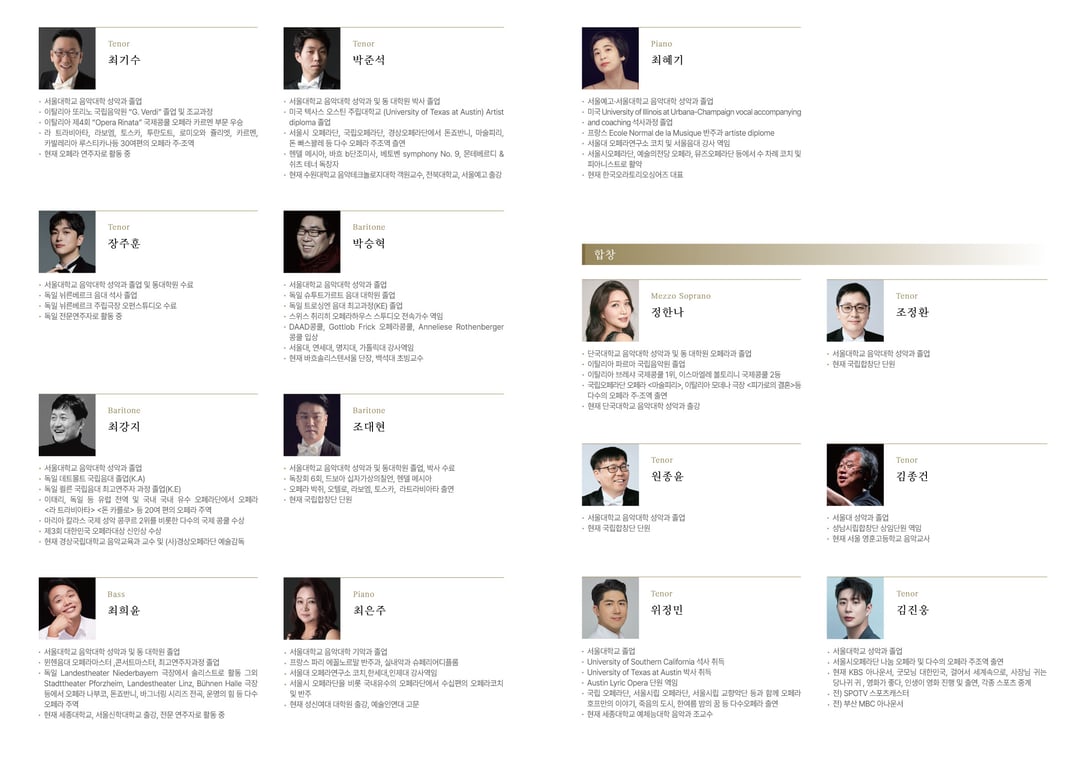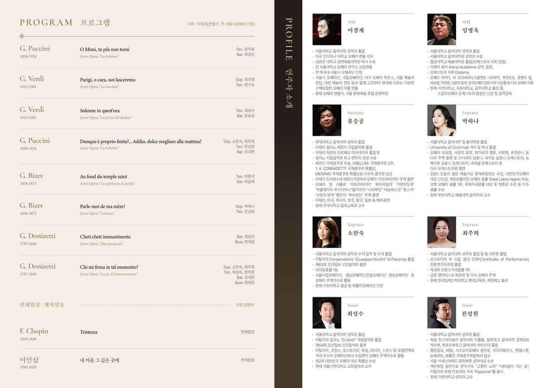 제자들은 스승이 남긴 음의 길을 따라 걸었다. 푸치니, 베르디, 비제, 도니체티의 아리아들이 차례로 무대를 채울 때마다, 마치 박 교수가 남긴 음악의 자취를 손끝으로 더듬듯 이어갔다. 듀엣의 호흡, 앙상블의 얽히는 선율, 한 음 한 음에 담긴 마음은 스승에게 바치는 가장 순수한 인사였다.
