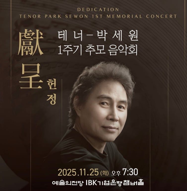 테너 박세원 교수 1주기 추모 헌정공연이 2025년 11월 25일(화) 오후 7시 30분, 예술의전당 IBK챔버홀에서 열렸다.
