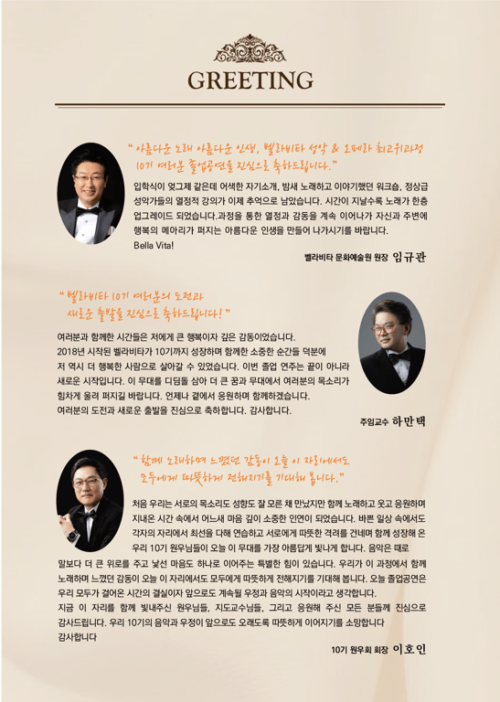 바로 그것이 벨라비타 성악 최고위과정이 지난 1년 동안 10기 원우들과 함께 걸어온 여정이었다.