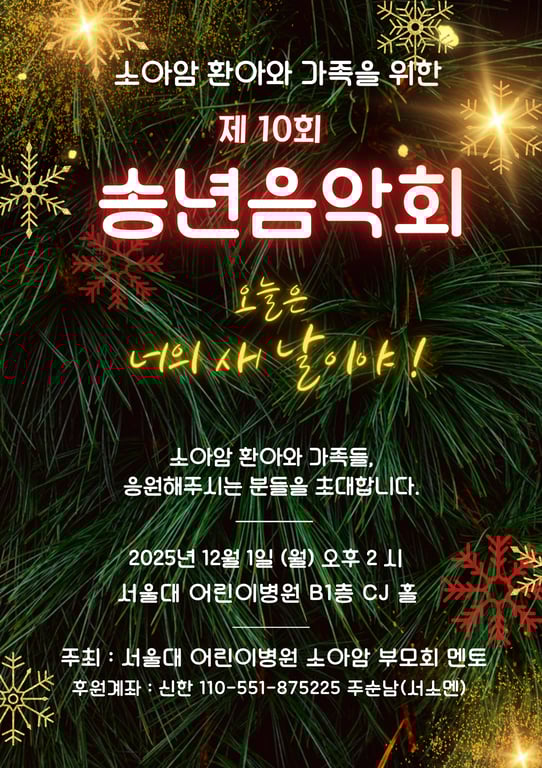 “제10회 소아암 환아와 가족을 위한 송년음악회” 김명국 배우의 사회와 박철현감독과 따뜻한 분들의 후원으로 의미있게 치러졌다.