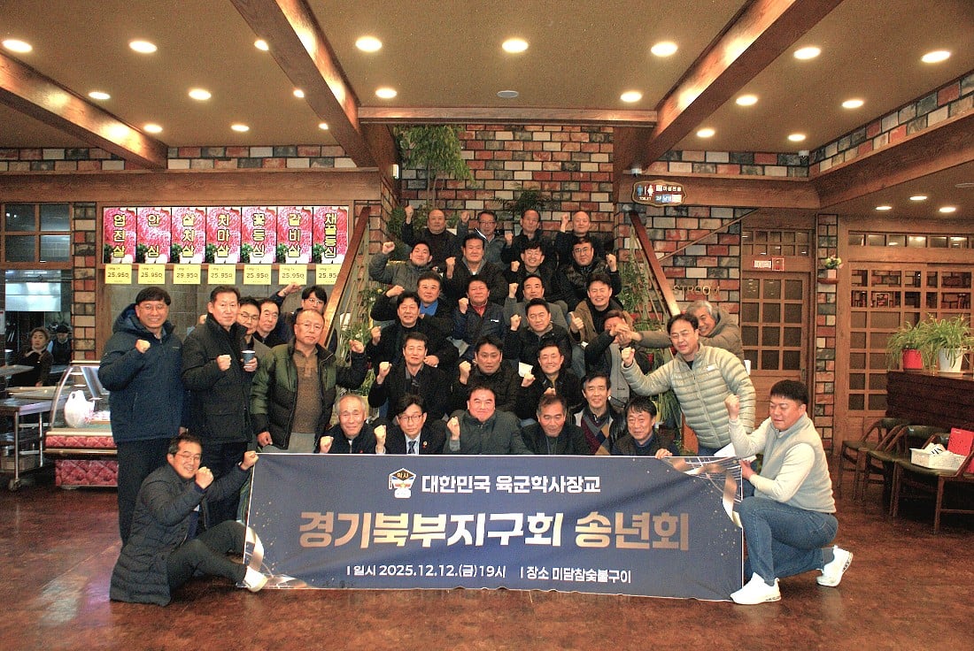 육군학사장교 총동문회 경기북부지구회는 지난 12일(금) 오후 7시, 의정부시 미담참숯불구이에서 송년회를 개최하며 2025년 한 해를 뜻깊게 마무리했다.