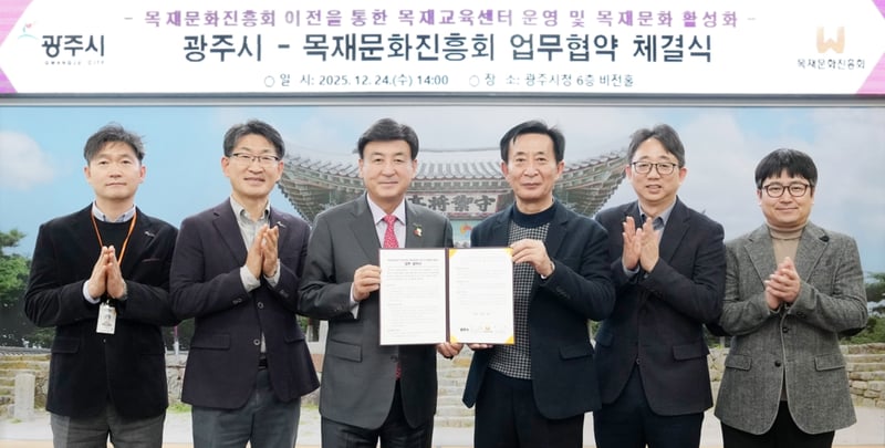 [강남 소비자저널=정현아 기자] 광주시는 지난 24일 시청에서 목재문화진흥회와 ‘탄소중립 목재교육종합센터’의 성공적인 운영과 목재문화 활성화를 위한 업무협약(MOU)을 체결했다.