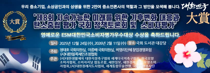 강남 소비자저널 선정, 이달의 우수 기업 2026년 01월 09일2026년 01월 10일 김은정전체기사 비영리단체 창업경영포럼 추죄, 제 8회 ESM 대한민국소비자평가우수대상시상식에서 대상을 받은 기업 중 강남 소비자저널이 선정한 기업들의 코너입니다. A B C D E F G H