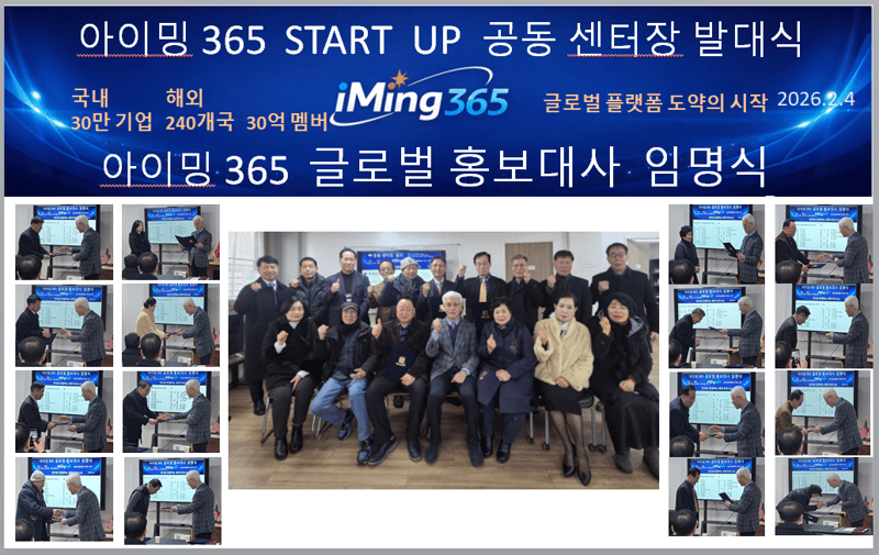 아이밍365(대표 김경철)는 지난 2월 4일, 서울시 광진구 소재 아이밍 본사에서 START UP 센터장 발대식을 성황리에 개최하며, 글로벌 플랫폼 기업으로의 도약을 공식 선언했다.