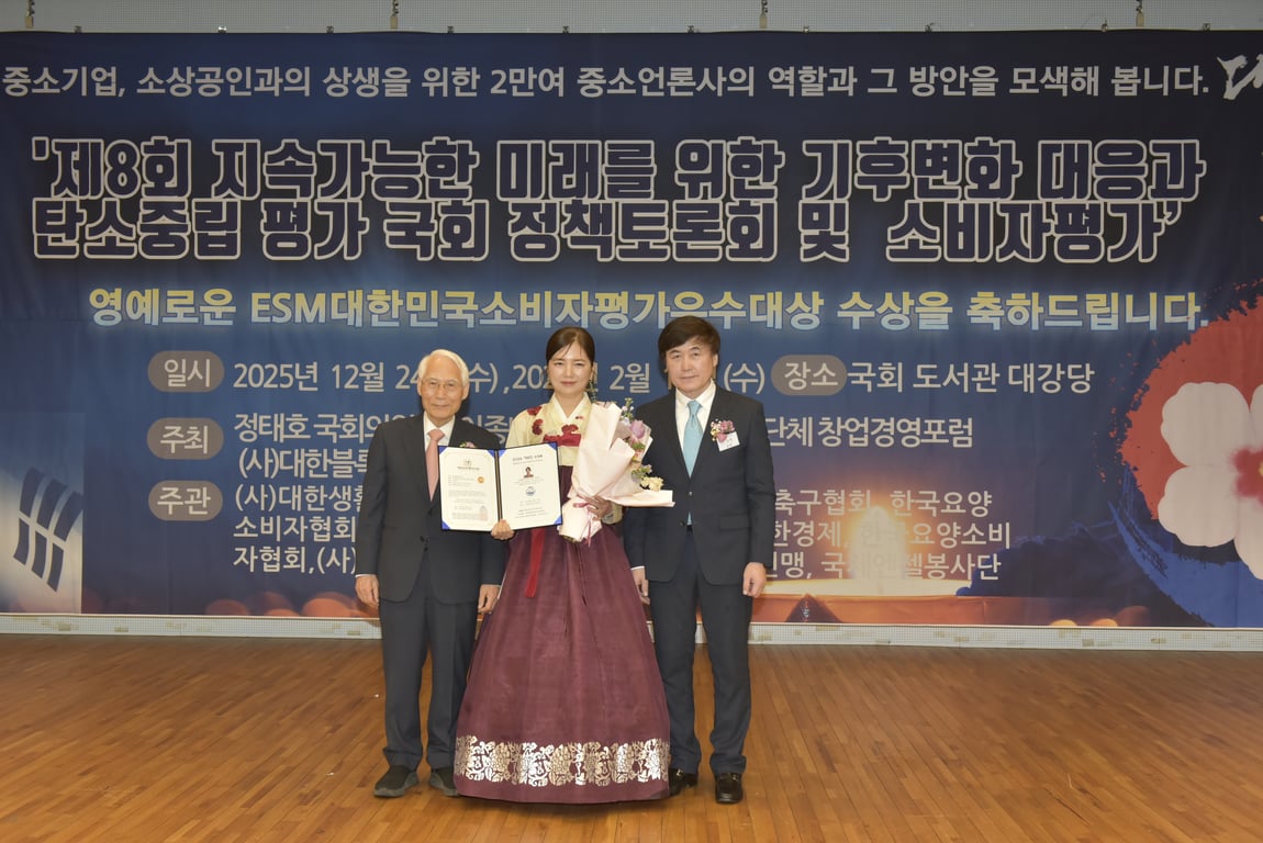 이번 시상식은 창업경영포럼과 ESM 대한민국소비자평가단이 주최 및 후원했으며, 소비자 신뢰와 시장 경쟁력을 바탕으로 각 산업 분야에서 우수한 성과를 거둔 기업과 인물을 선정해 시상했다.