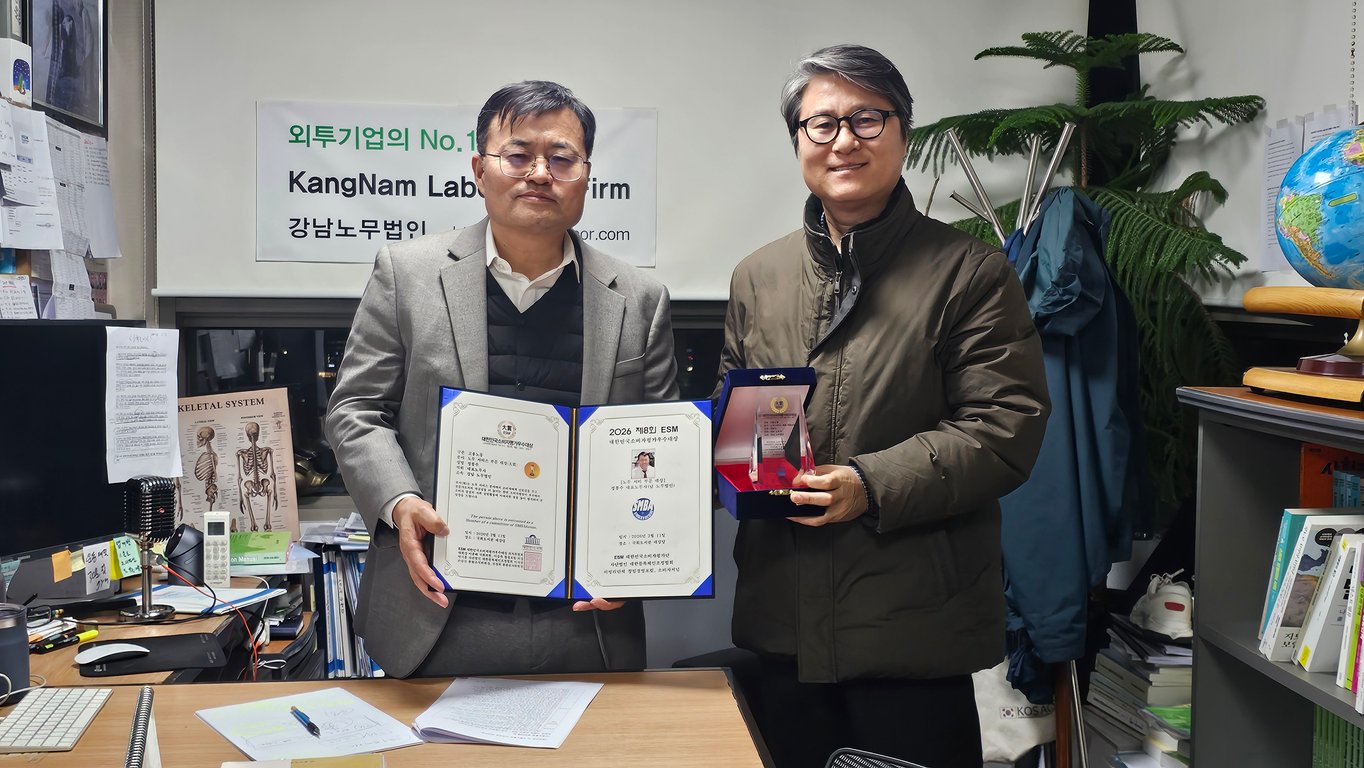 정봉수 대표노무사(강남 노무법인)가 2026년 2월 11일 서울시 영등포구 소재 대한민국 국회도서관 대강당에서 열린 ‘2026 제8회 ESM 대한민국소비자평가우수대상’ 시상식에서 노무 서비스 부문 대상을 수상했다.