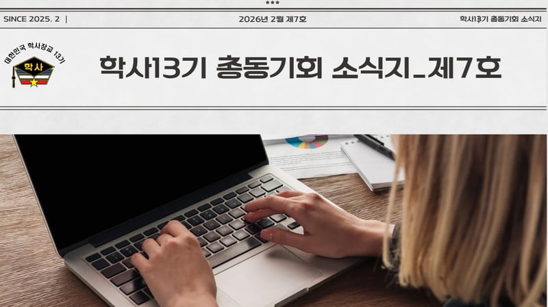 육군학사장교13기총동기회(회장 백주인)는 2026년 3월 4일(화) 학사13기총동기회 소식지(이하 소식지) 제7호를 발행했다.