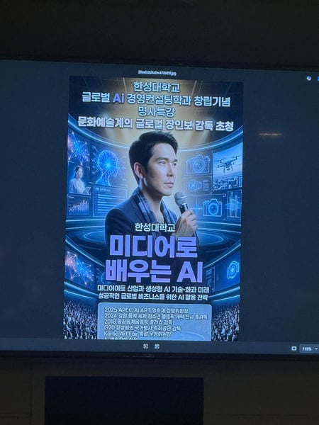 한성대학교 글로벌AI경영컨설팅학과는 지난 2026년 4월 15일 오후 4시, 미래관 디지털러닝센터에서 세계적인 문화예술 전문가이자 AI 콘텐츠 플래너인 장인보 감독을 초청해 특강을 개최했다.